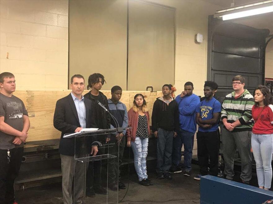 Manual teacher Andrew Rice says the donation, in part, helps buy the same equipment that students will eventually use when they enter the workforce. “As a teacher, I’m excited to now have the equipment and the resources that allows me to work with students on skills that they can walk out the door and utilize as a high quality candidate for a Caterpillar position or another employer in our own backyard.”