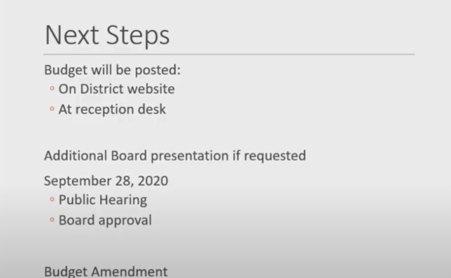 McKenzie and Director of Budgets and Compliance Carla Eman spent 20 minutes making the annual budget presentation; a public hearing and vote on the budget is set for Sept. 28.