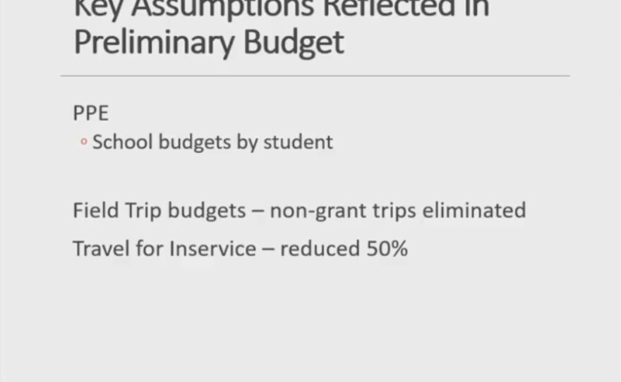 Eman said all departments were asked to make a 5-10% reduction in supply purchases. McKenzie said all field trips not funded by grants have been cut and travel allotments for teacher in-service programs have been reduced by 50%.